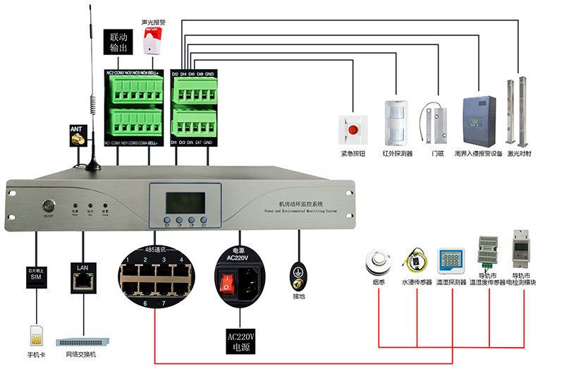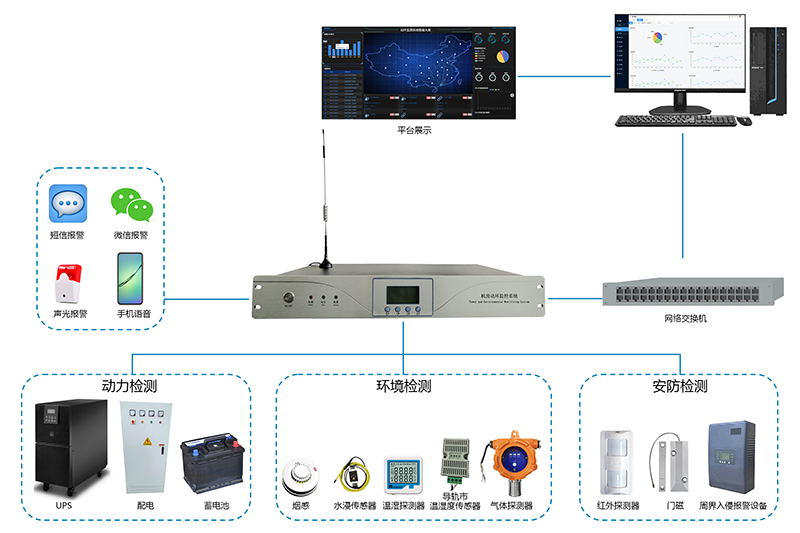 動環主機是一款集動力環境監控功能及入侵防盜報(bào)警於(yú)一體的設備,可實時監測機房、基站等場所的動力設備運行狀态、環境參數、入侵報(bào)警,如市電 、UPS、蓄電池、溫濕度、煙霧、漏水、門禁